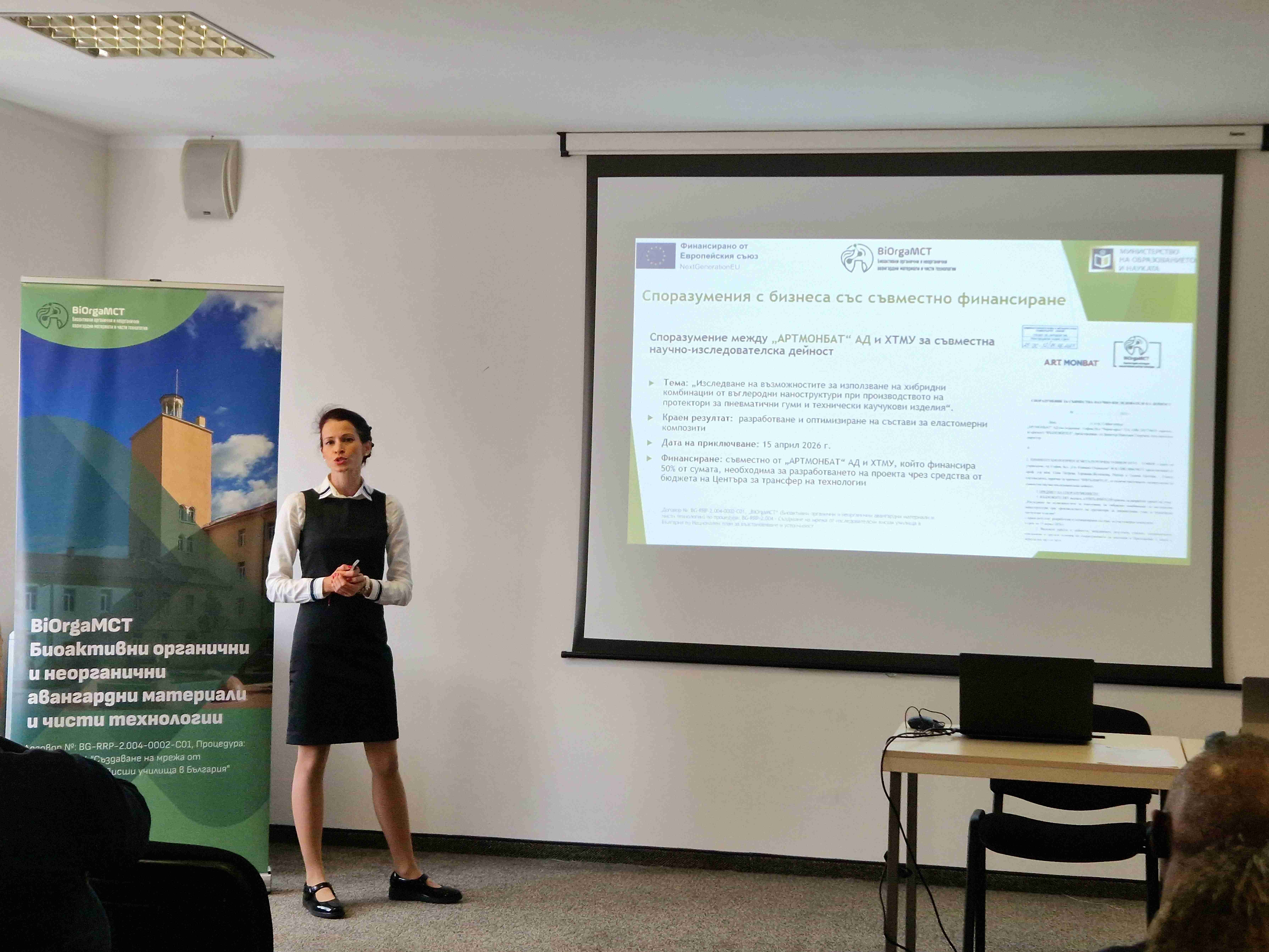На 17 октомври 2024 г. в гр. София се проведе годишната научна конференция на проект „BiOrgaMCT“ (Биоактивни органични и неорганични авангардни материали и чисти технологии) на Химикотехнологичния и металургичен университет. На нея, в присъствието на голяма част от изследователите, участващи в изследванията, представители на индустрията и представители на Изпълнителна агенция “Програма Образование” на Министерството на образованието и науката, бяха представени постиженията на изследователските групи през първите 18 месеца от изпълнението на проекта (за периода януари 2023-септември 2024 г.).